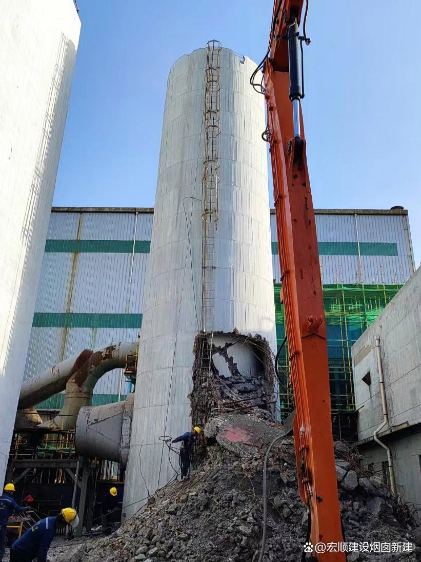 若烟囱内部有耐火砖或保温棉内衬,需与外层筒壁同步拆解,避免内衬单独脱落砸伤人员。