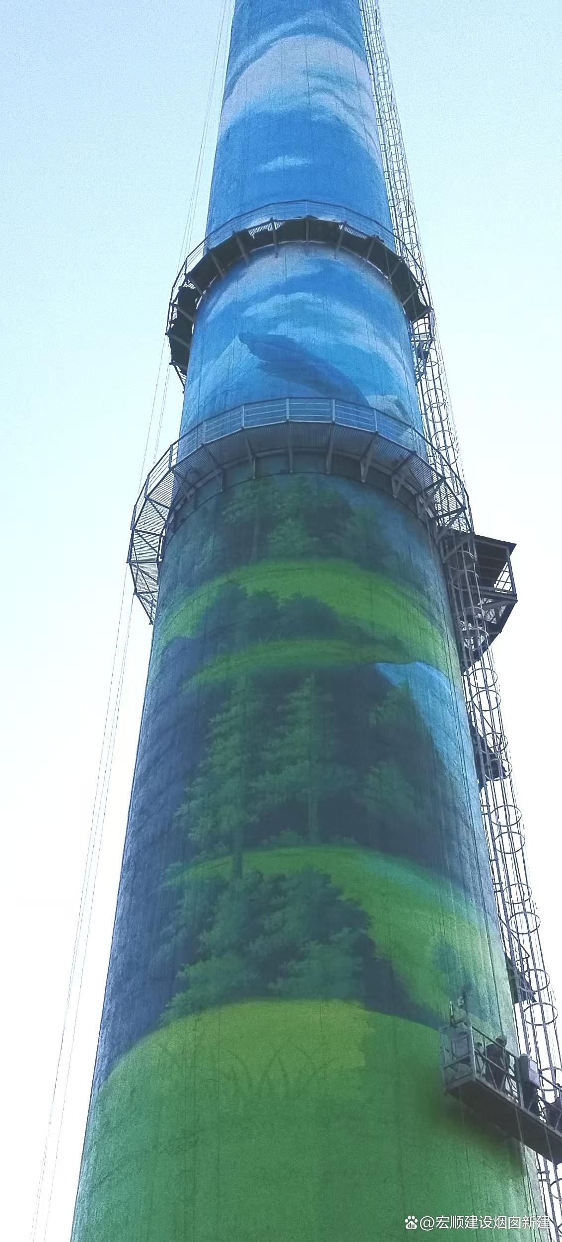 主题匹配:根据烟囱功能(如工业、环保、文化地标)设计主题,如环保主题可选用蓝天白云、绿植元素。