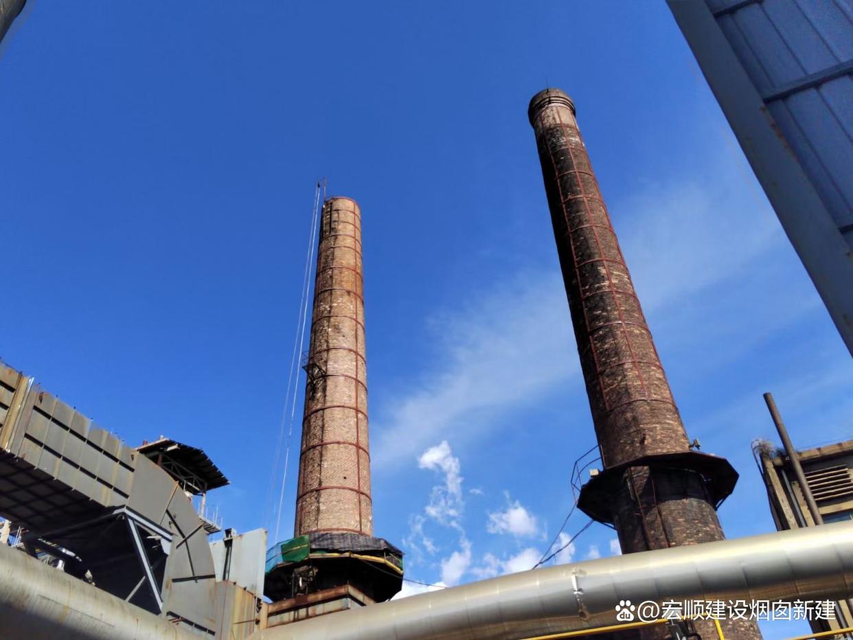 重度倾斜(偏差≥0.5%):采用顶升法在基础下设置千斤顶,逐步顶升至垂直位置。顶升后浇筑扩大基础,增加配筋,提高抗倾覆能力。在烟囱顶部增设钢缆锚固装置,连接至地面独立基础,形成稳定体系。